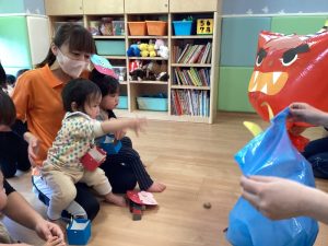 子ども達もとっても楽しみにしていたようで沢山豆を投げていました☺️