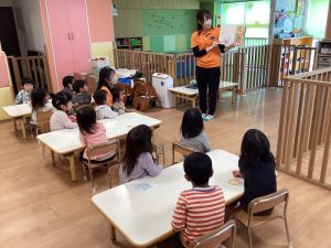 お話を読んだ後子ども達に「大きくなったらなにになりたい?」と聞くと「けーきやさん!」「アイスクリームやさん!」「おいしゃさんがいい!」と教えてくれました🍰🎶