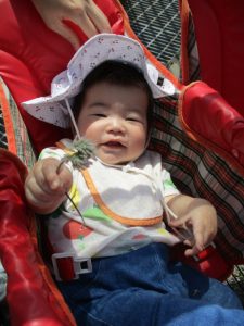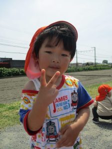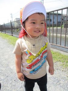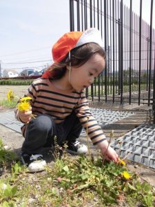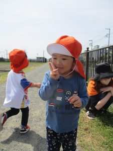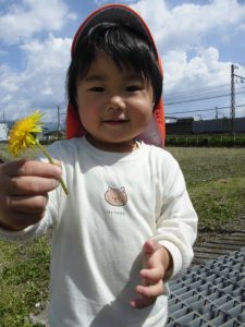 あぜ道では、タンポポを摘むと保育者に「どーぞ」と沢山プレゼントしてくれるので喜んで受け取ると、子ども達も嬉しそうにニコニコ笑っています(*^^*)