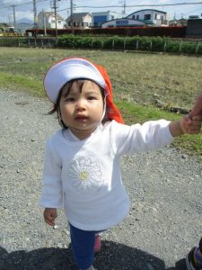 いちご組のお友達は、保育者と手を繋いだりバギーに乗って気持ちよさそうにお散歩を楽しんでいます