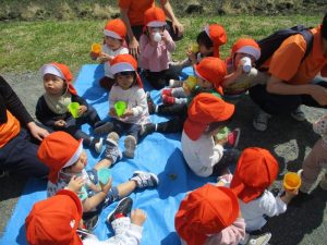 沢山遊んだ後はしっかり水分補給の休憩をしてから保育園に帰ります![]()