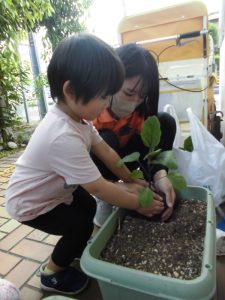 【小規模保育園:小田原園】りんご組のナスとお花🌼