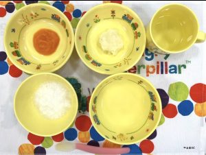 みんな楽しそうにご飯を食べてくれるな~と保育室を眺めていると、こちらに気付き、満面の笑みで手を振ってくれた子がいました。食べることは楽しいと感じてもらえるようにこれからもサポートをしていきます♪