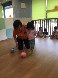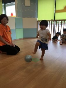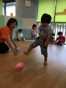 カリキュラムでははじめて行うボール蹴でしたが、みんななかなか上手でしたよ♪