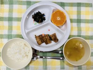 ごはん 味噌汁 さんまのかば焼き ひじきの炒り煮 みかん