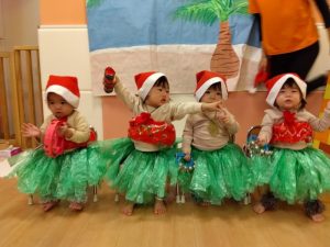 保育者の愛情たっぷり衣装に身を包み、これはこれは可愛いフラダンサーが