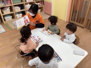 【小規模保育園:小田原園】絵本プログラム「ぽんぽんポコポコ」