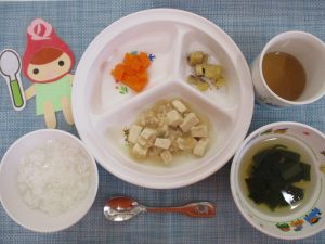 サンライズキッズ保育園 ◎給食の様子 今日の給食の麻婆豆腐は食べやすかったようで自ら進んで食べていま...