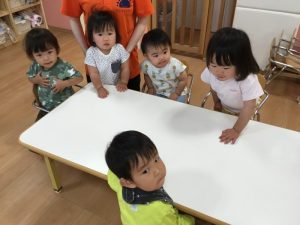1歳児クラスでは集まってみんなで仲良く歌を歌っています![]()