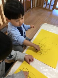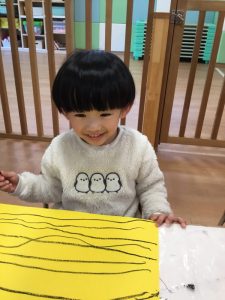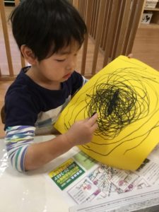 黄色い画用紙に黒いクレヨンで塗り塗り🖍