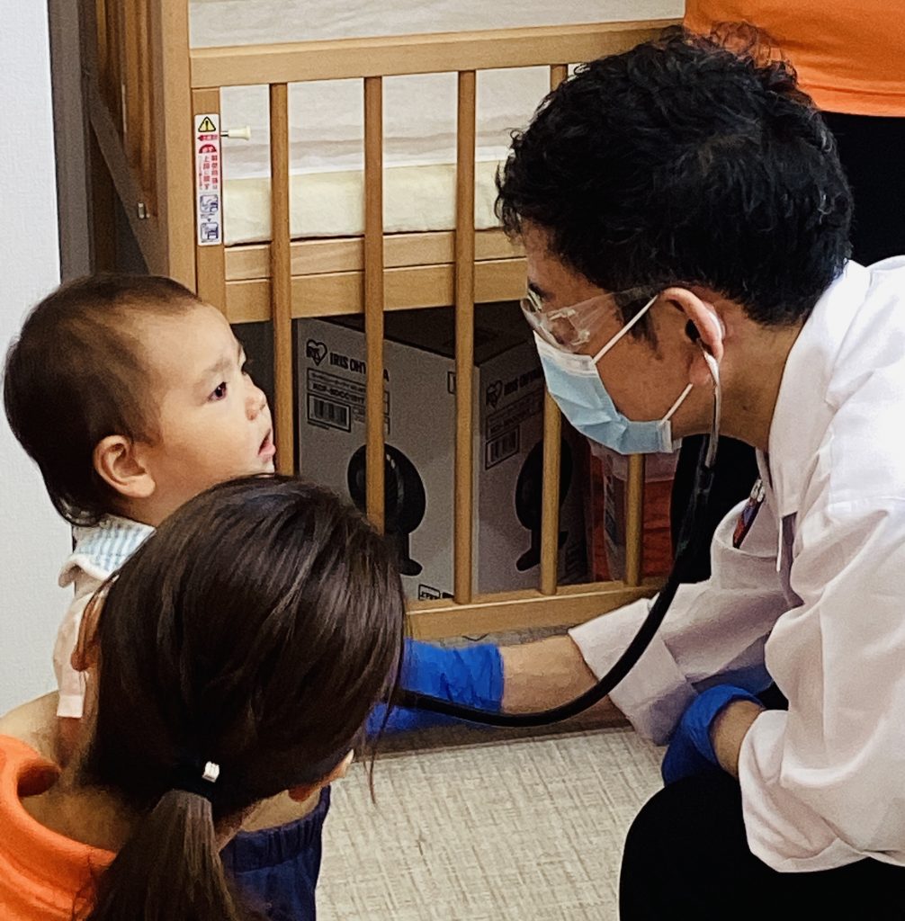 緊張しながらも頑張っています?「お胸の音聞かせてね」