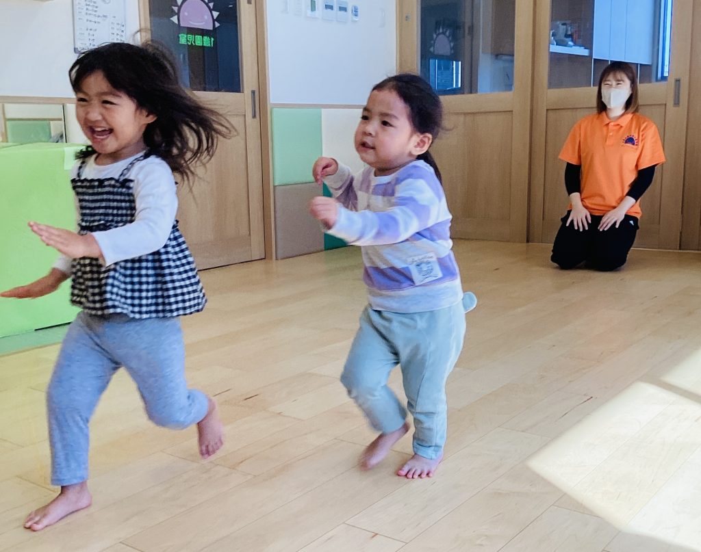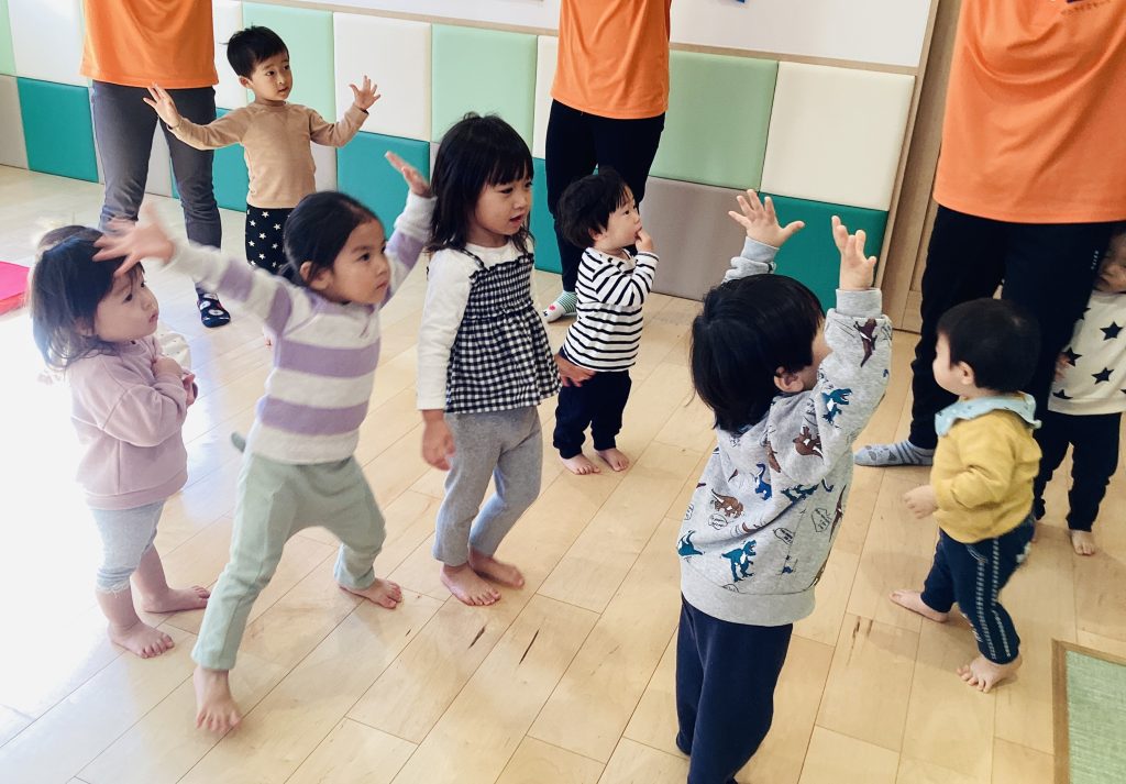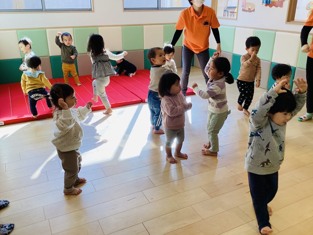 保育者も一緒に身体を動かしていますよ✨