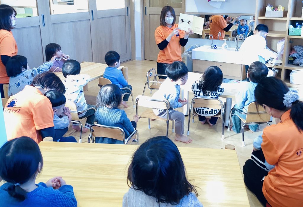 お話が長めの絵本ですがりんご組さん🍎