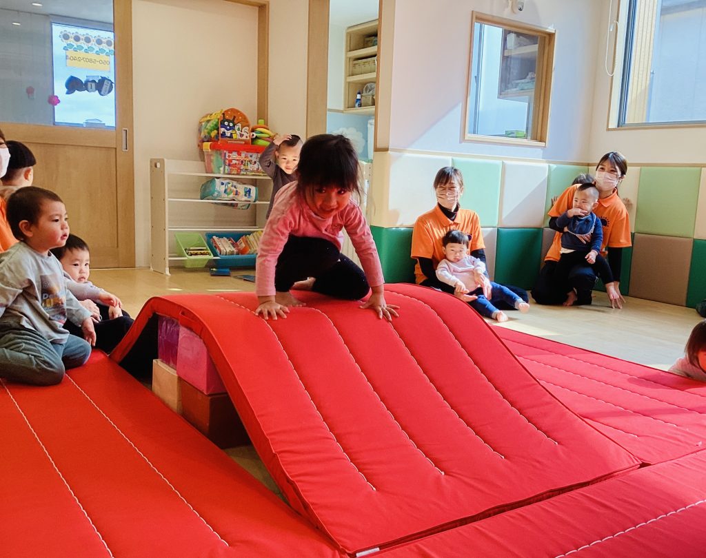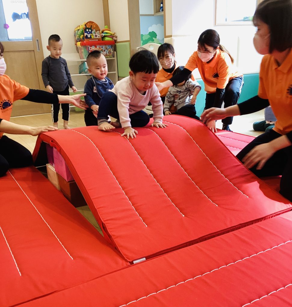 今回はマットを大きなお山に見立てて遊びましたよ♪