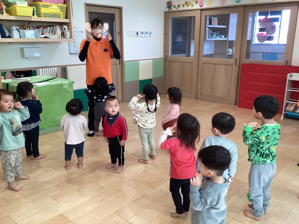 保育者の動きを見ながら、楽しく踊る子どもたち🕺