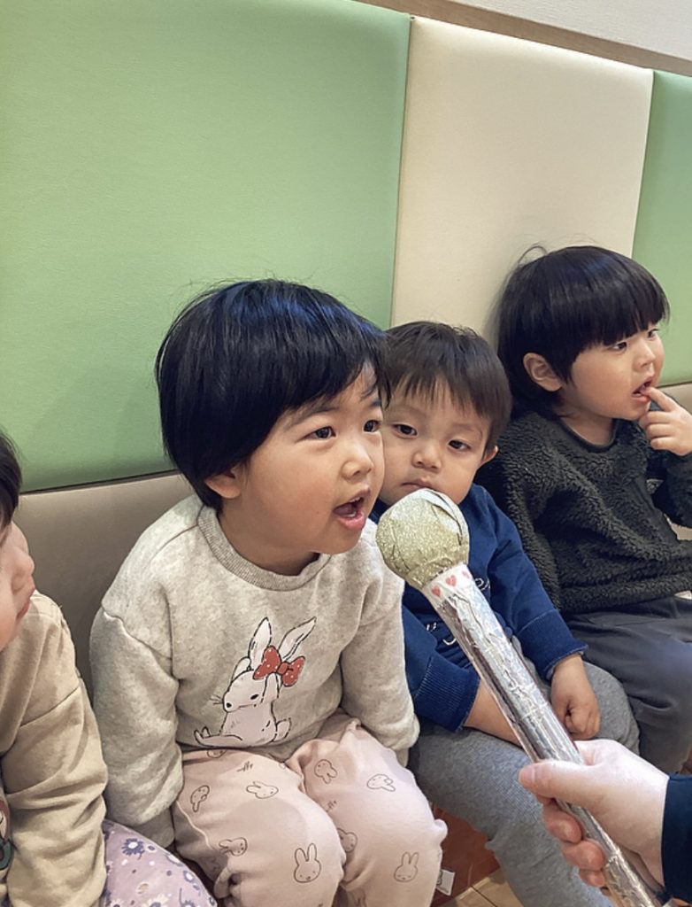 保育者からWhat’s your name? とマイクが回ってくると…🎤