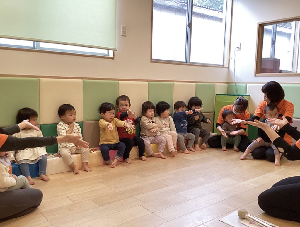 新しいお友達は自己紹介を兼ねて保育者と一緒にお名前を言いましたよ🧡