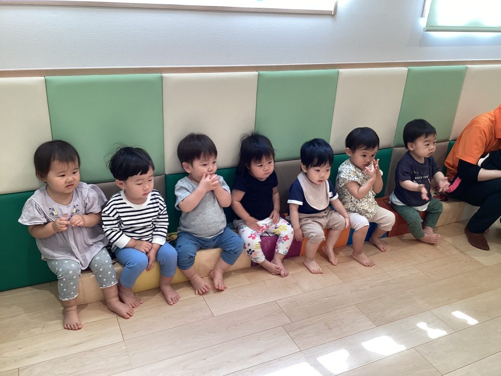 廊下で順番待ちをしているいちご組さん🍓