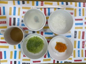 粥 野菜スープ 人参ペースト ブロッコリーのだし煮