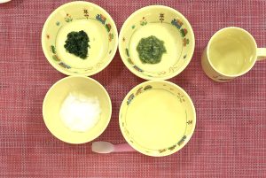 粥 野菜スープ(大根) ブロッコリーのだし煮 小松菜ペースト