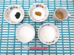 粥 すまし汁 小松菜ペースト 茹でかぼちゃ