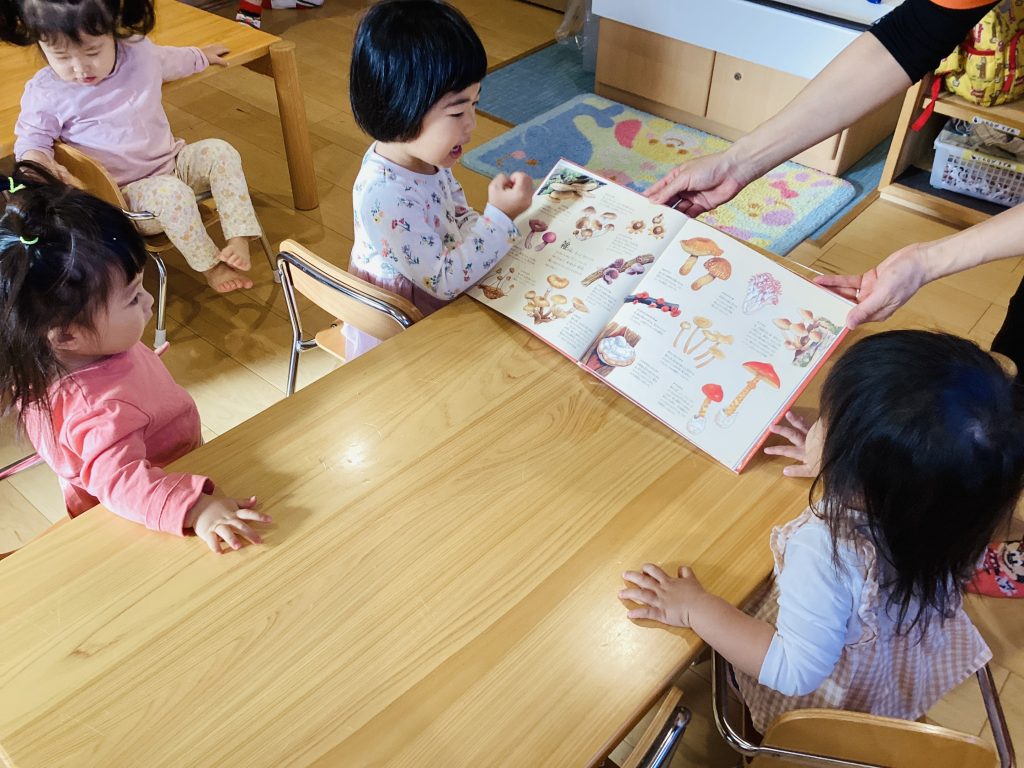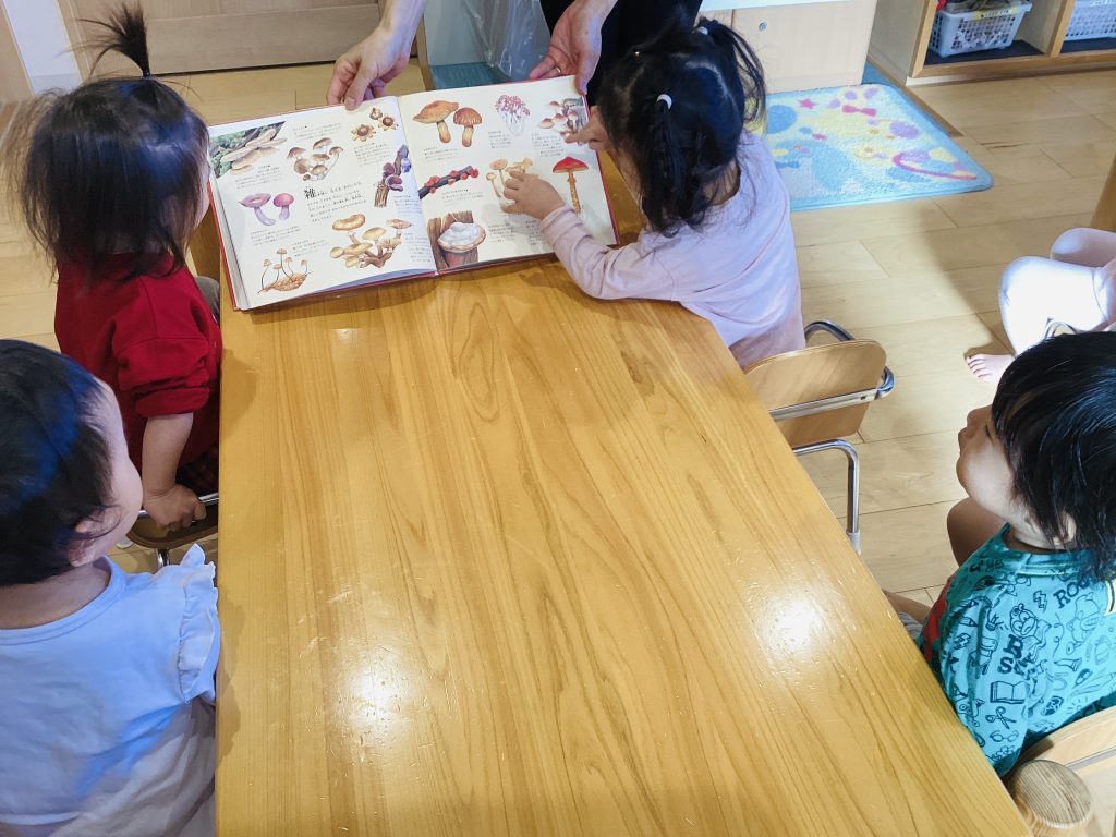 いろんなきのこの形に興味津々な