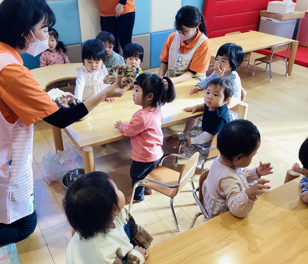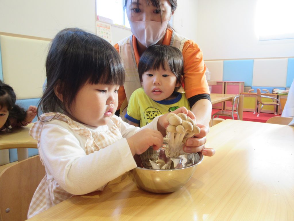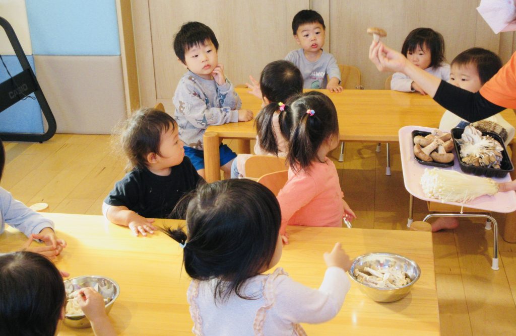 きのこほぐしに興味津々な子ども達