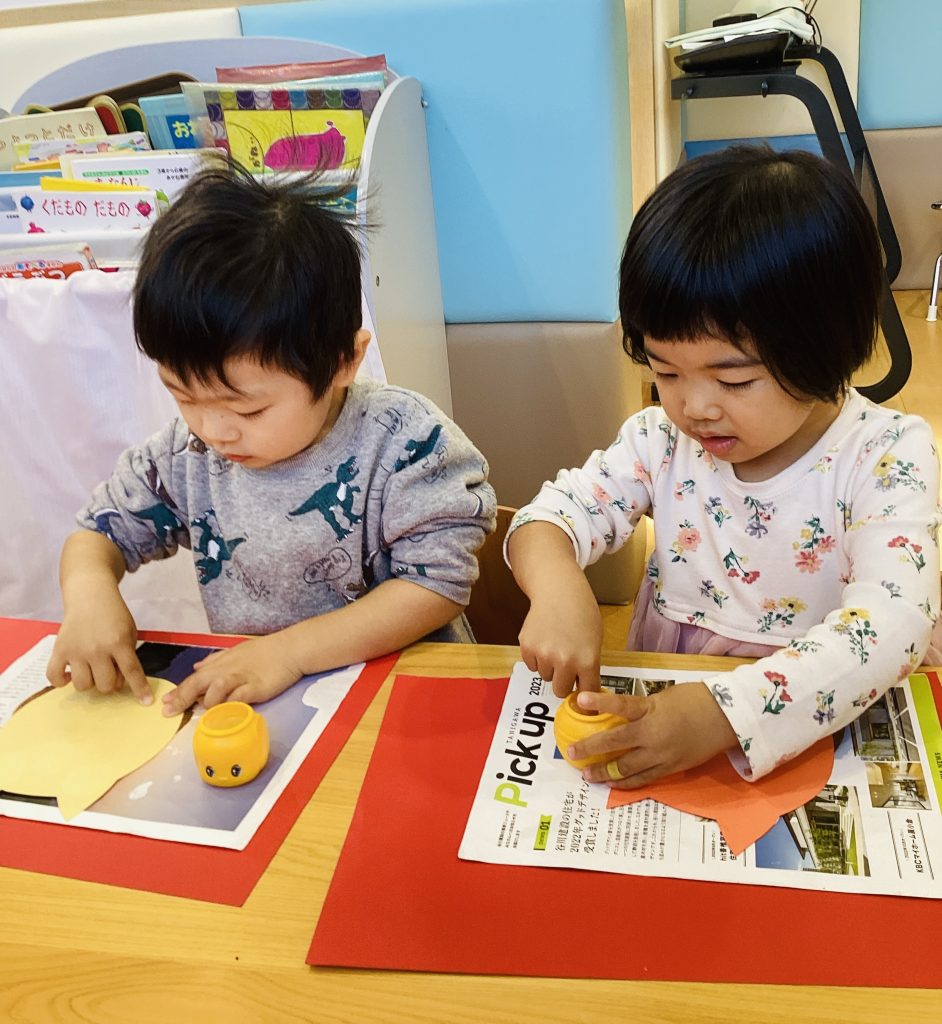 シール貼りや指スタンプをしながら