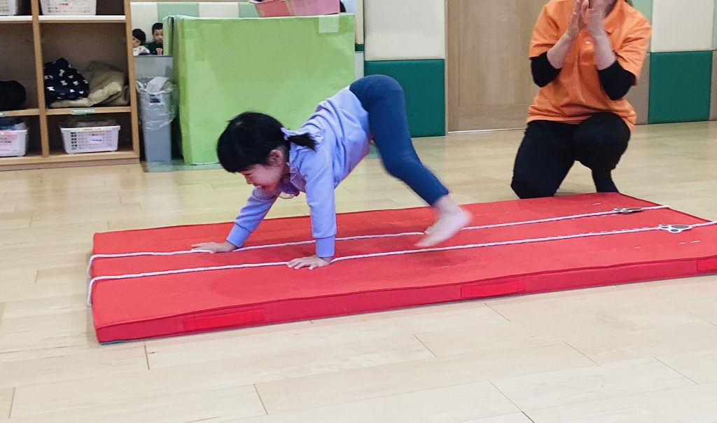 マット運動の“クマさん歩き🐻”の
