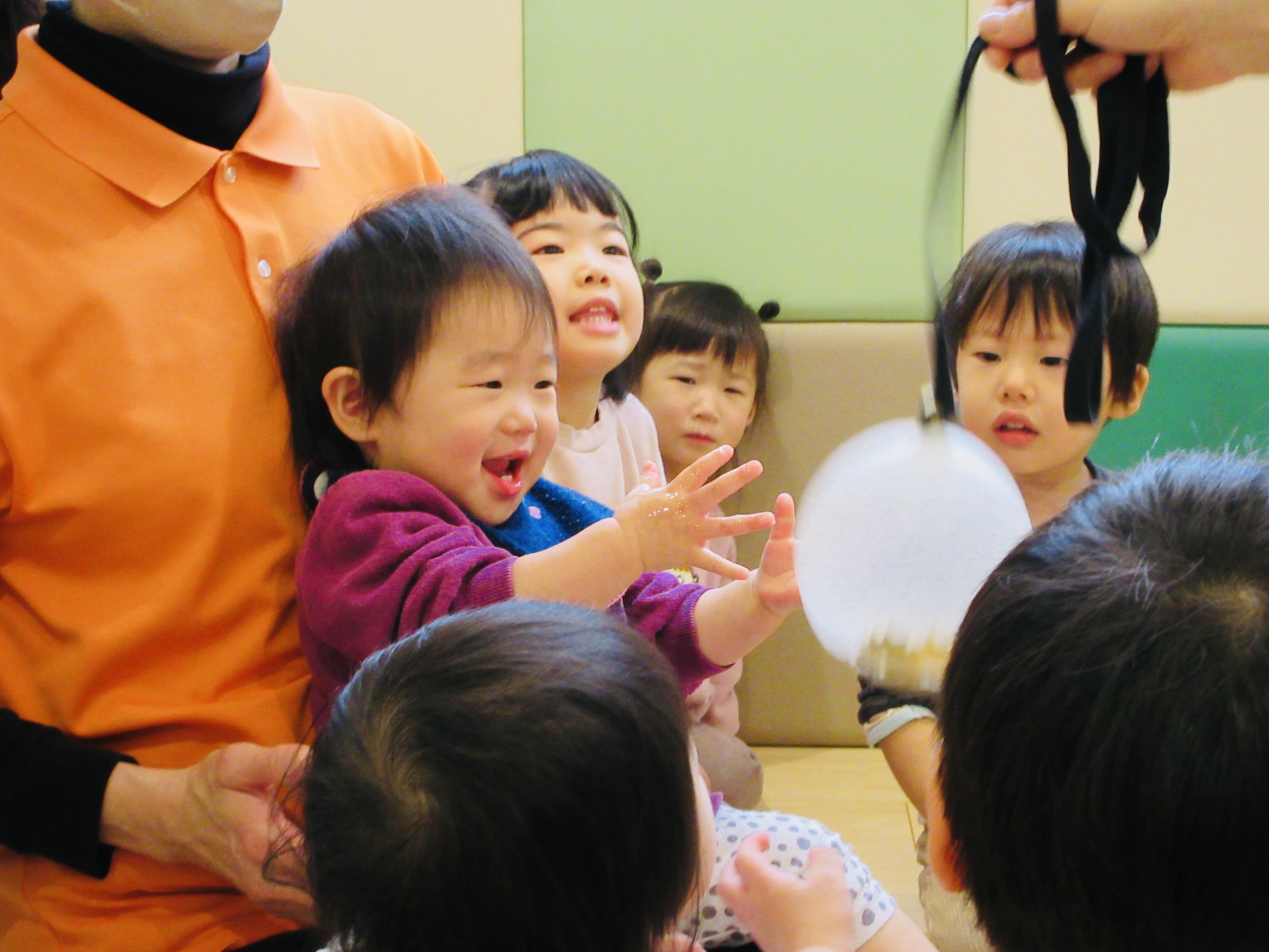 ふわふわとした風船をタイミングよくキャッチして大喜びでした😄