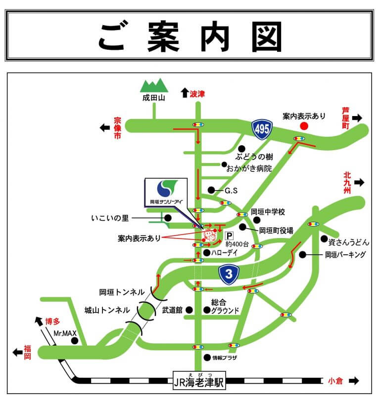 鹿児島本線「JR海老津駅」より車(タクシー・バス)で3分