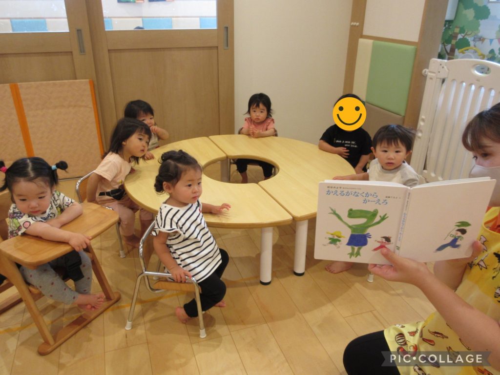 カエルが登場すると子どもたちは指を差して