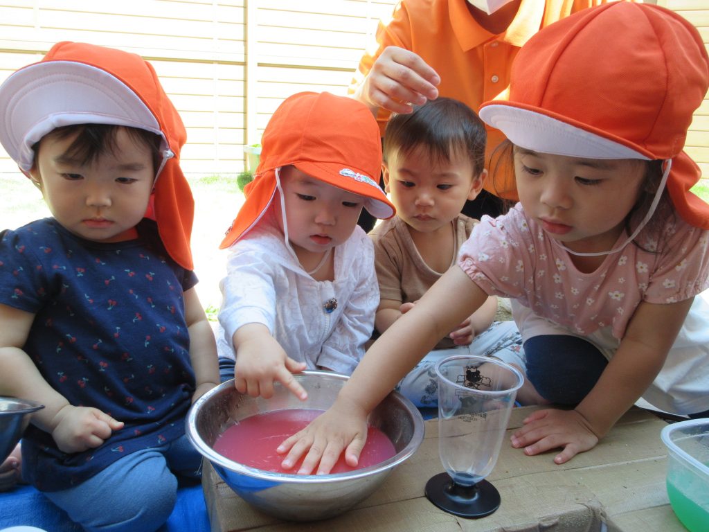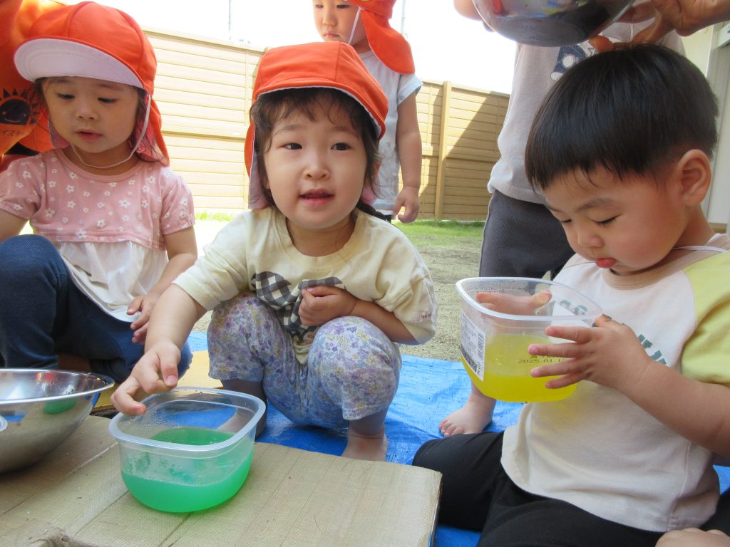 混ぜたら色が変わる様子を見たり👀