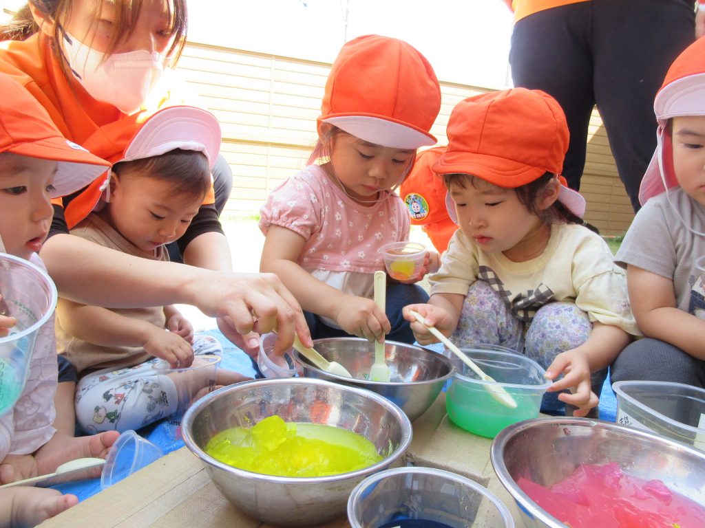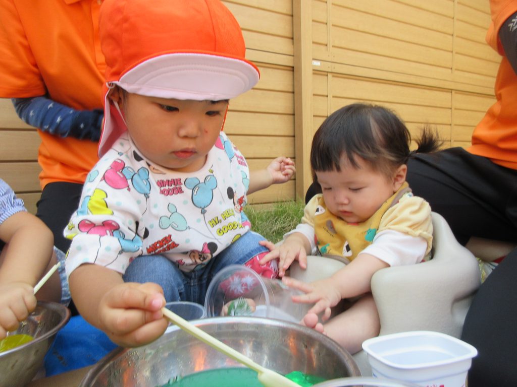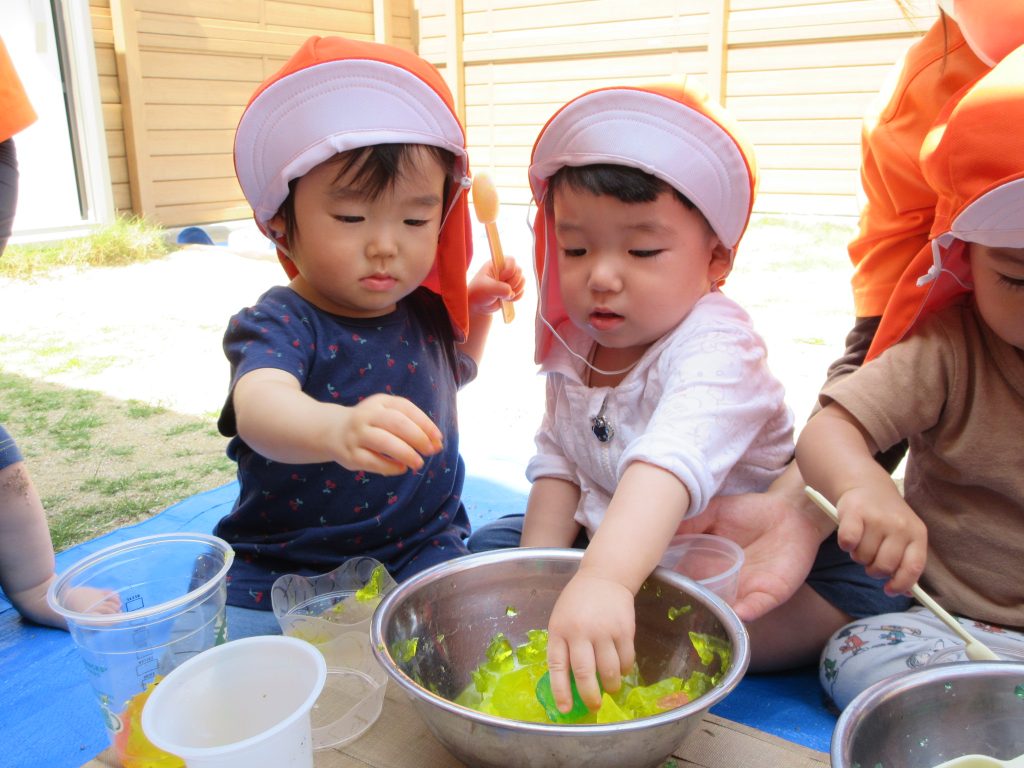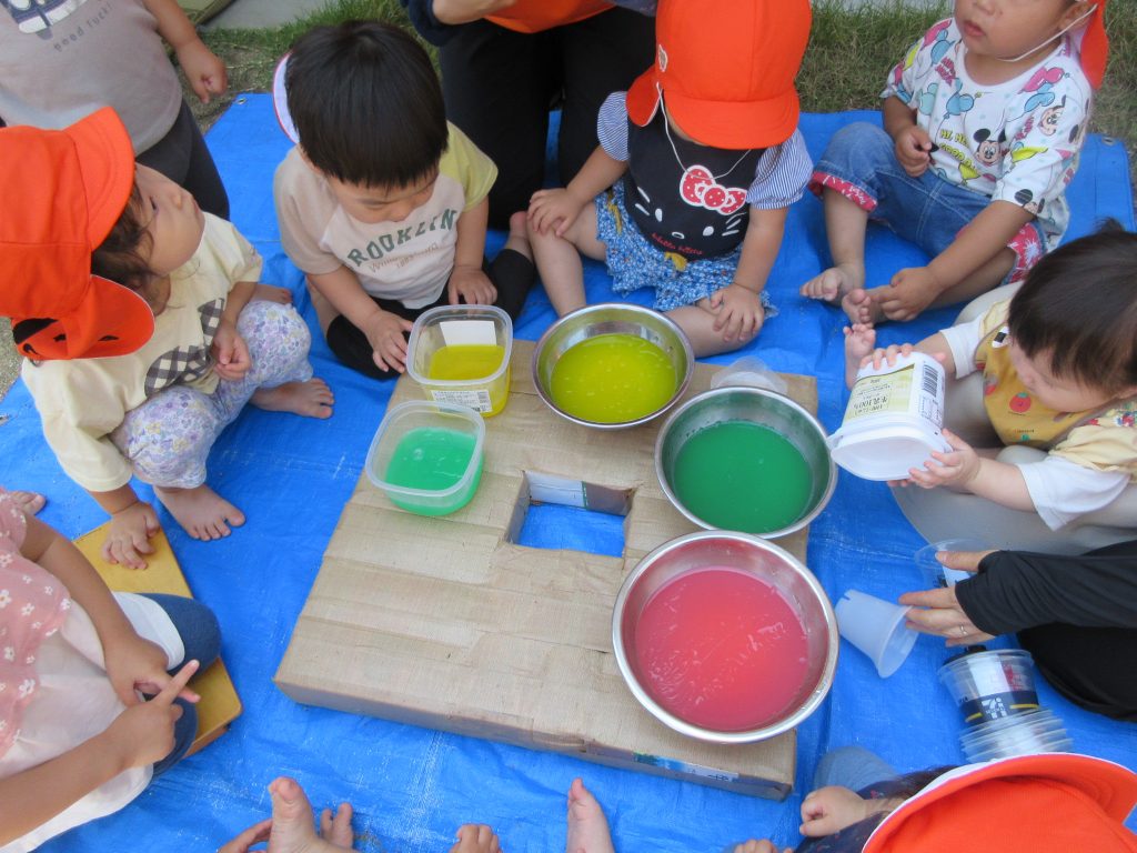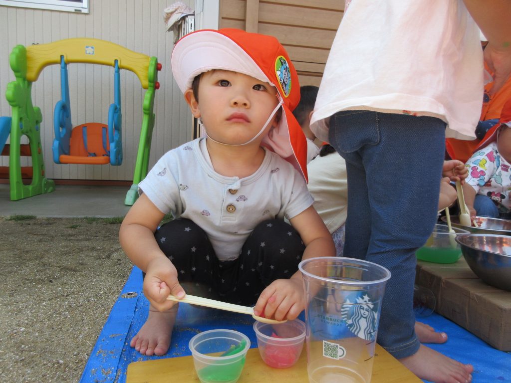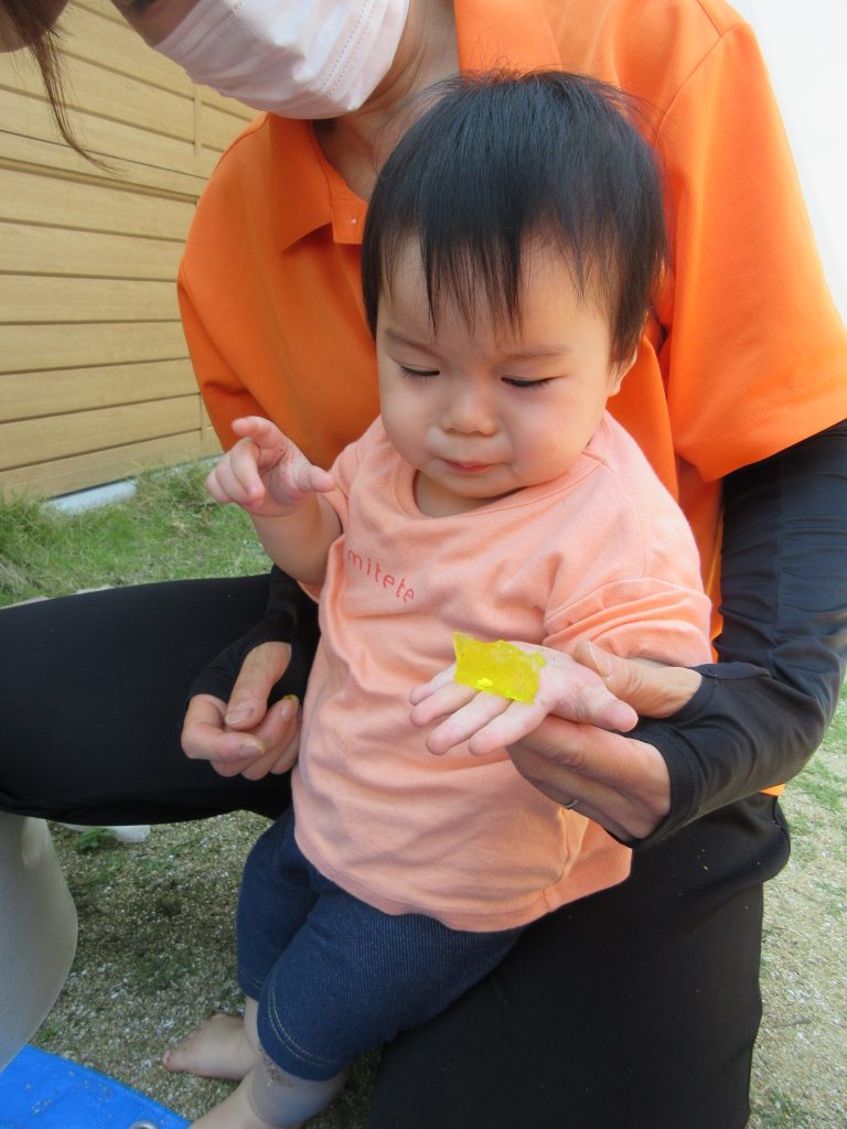 水遊び前の感触遊びを楽しみましたよ😆
