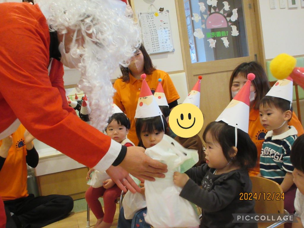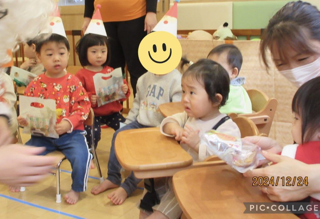 サンタさんからプレゼントを受け取ると嬉しそうな笑顔が見られました🙂🌟