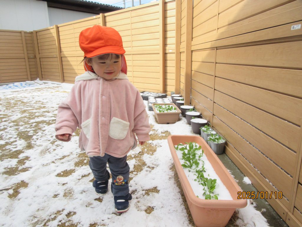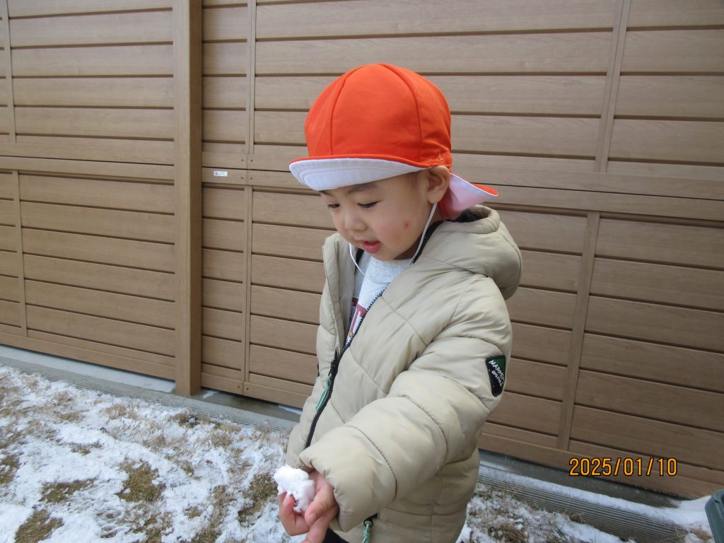 雪に触れて「つめたーい」と