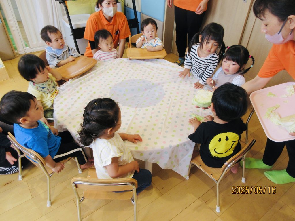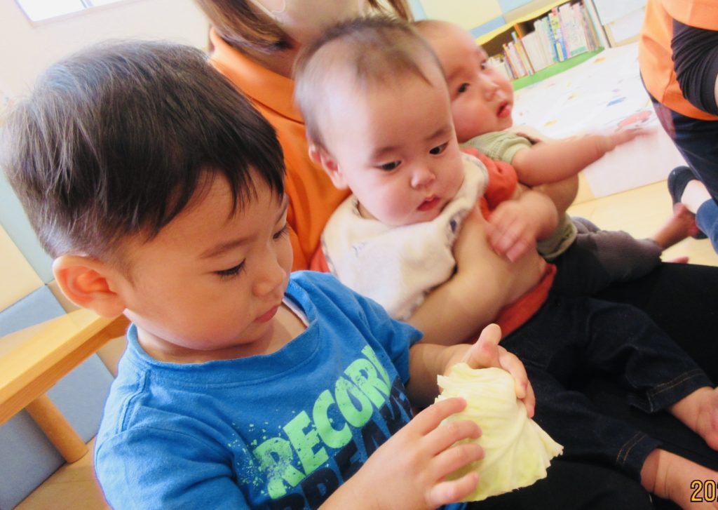 今月の食育が「キャベツ」だったので絵本を読んだ後、