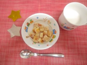 【1.2歳児食】エネルギー496kcal たんぱく質19.7g 脂質15.4g