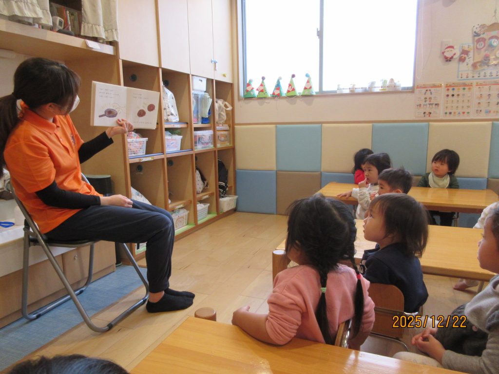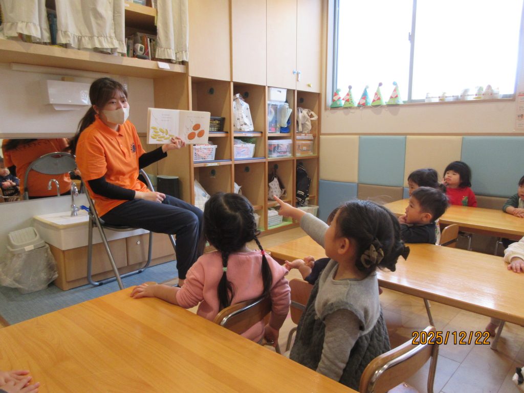 岡垣園では、数ヶ月に一度、ボランティアの方が近くの図書館から沢山の絵本を借りて持って来てくださるのですが、今回はその中の1冊をご紹介します💁🏻‍♀️