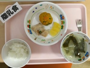 2018.05.18|給食ピックアップ ☆5月18日(金)のお給食☆ 今日のお給食です <普通食> ★ご飯 ★魚の香味炒め ★味噌汁 ★南瓜サラダ <離乳食> ★メニューは普通食と同じです。 細かく刻んだりさらに柔らかくしています。 前へ 次へ