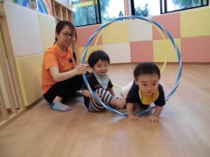 フラフープのトンネルをくぐったり