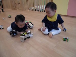 待っている間は、車の玩具で