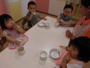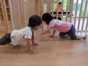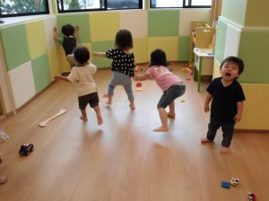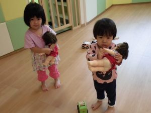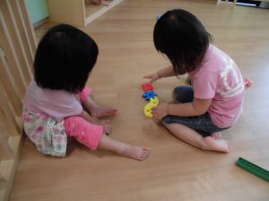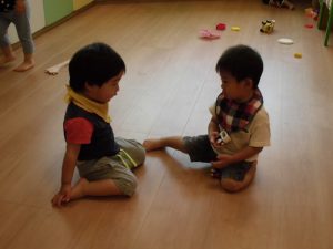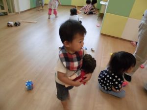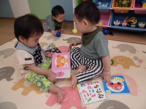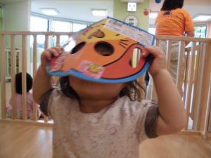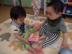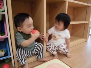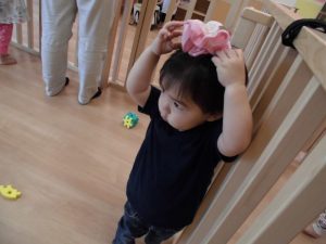 ぽぽちゃんの帽子を被ってみようとしたり、