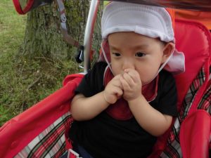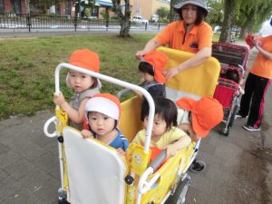 気持ちよくてお散歩車で