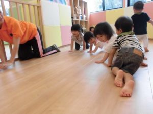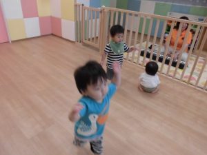 1歳児いちごぐみさん、0歳児ももぐみさんは