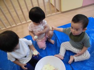 こねこねして細長くし、保育者に