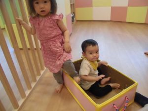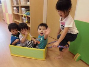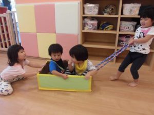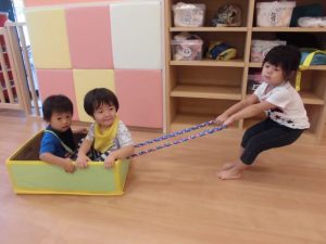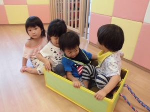 箱電車では、保育士に引っ張ってもらうのではなく