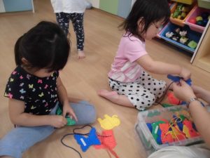 りんご組さんはひも通しをしました。