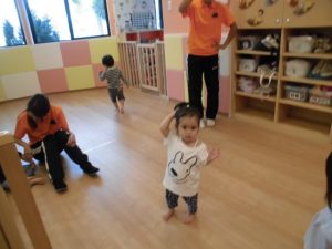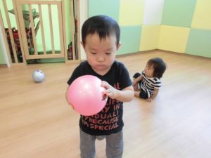 今日は、リトミックをしてボール遊び!