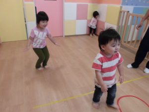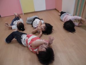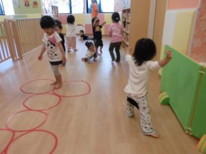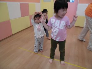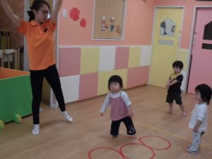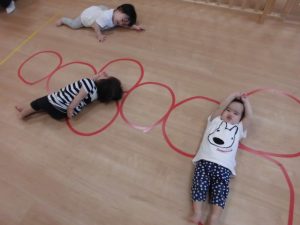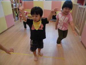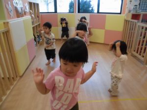 今日は、リトミックをしてボール遊び!